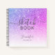 Personalised Pink Purple Glitter Sketchbook with Your Name in Elegant Handwritten Script Font Typography. Elke Clarke© Add you name or monogram or text using the customise menu.
