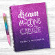 This personalised girly 8.5 x 11 sketchbook has white text on a beautiful pink and purple faux glitter background. The words, "DREAM,IMAGINE,CREATE" in a hand drawn font personalised with your name below. Customise the sketchbook with the name of your choice to make someone feel extra special. Makes a fun gift for birthdays or for Christmas. Comes in a variety of colours. Designed for you by Blackberry Boulevard.