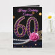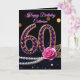 Celebrate her milestone 60th birthday with a touch of luxury and high-end glamour! This sophisticated design features a stunning, jewel-encrusted "60" in vibrant purple amethyst and diamonds, accented by a romantic pink rose, shimmering gold leaves, and a classic string of white pearls against a sleek black background.