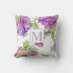 An Elegant watercolor floral pillow with colours of purple, pink, sage and blush. Customisable monogram.