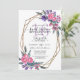 This modern and elegant sweet sixteen birthday party invitation is perfect for classy event. It features hand-painted berry pink, violet purple, and sage green watercolor flowers and leaves on top of a faux printed gold glitter geometric terrarium frame on top of a simple white background. It's chic, pretty, country, artsy, unique, and original; the perfect design for your special day. Stylise your invites with this one-of-a-kind and original hand-painted artwork done by the artist of La Femme. Rachel Matheney.