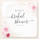 Elegant Pink Red & Gold Floral Bridal Shower Square Paper Coaster