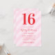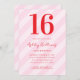 Create your own personalised 16th birthday invitations featuring modern typography and striped pink pattern background