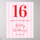 Create your own personalised 16th birthday party sign poster featuring modern typography and striped pink pattern background