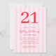 Create your own personalised 21st birthday invitations featuring modern typography and striped pink pattern background