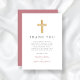 Elegant Pink Religious Cross Girl Baptism Thank You Card