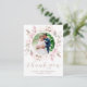 Elegant Pink Rose Floral Wreath Wedding Photo Thank You Card