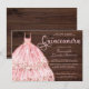 Elegant Pink Rose Gold Glitter Quinceañera Invitation featuring a stunning watercolor and glitter princess party gown in elegant shades of blush pink, rose gold, and floral accents on a rustic wood background. Luxury fonts and styling make this the perfect invitation for your Quince! Please contact us at cedarandstring@gmail.com if you need assistance with the design or matching products.