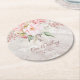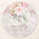Elegant Pink Rose Peony Floral Marble Wedding Round Paper Coaster