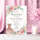 Gorgeous elegant Quinceañera (Mis Quince Años) watercolor floral invitations. Blush pink roses with greenery and faux gold frame. Faux glitter gown dress in pink. Editable template - easy to add your text - Spanish wording in back. Perfect for girl's 15th birthday party.