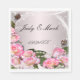 Pretty pink roses with pearls on a pink background. When the big day arrives, your gorgeous dress isn't the only thing that guests will be looking at. They will most certainly be enthraled by all of the stylish décor at the reception as well. That's why it's important to fill the day with dazzling little details that will make for a completely coordinated experience. And a subtle yet important element that is often overlooked is the wedding napkins. Of course an unembellished napkin doesn't add much on its own, but when you give it a dash of colour and a chic design, it will surely complement your decorations and stand out in a stunning way. Personalise by changing the text in the fields provided. You can change font style, size, and colour.
