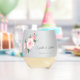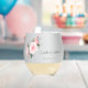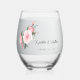 Elegant Pink Roses and Silver Wedding Stemless Wine Glass