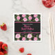 Elevate your birthday party table decorations with this custom made and personalised paper napkins featuring a beautiful Pink Watercolor Roses and bright greenery pattern on black background. Pink framed area nestling the customisable Thank you for coming, Sweet Sixteen Birthday girl's name, Sweet Sixteen Event title and event date typography.