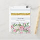 A beautiful pink floral thank you postcard featuring romantic pink roses against a trendy backdrop of soft grey and white striped pattern embellished with a strip of glittery gold. Personalise this ultra feminine design by adding your name and personalised message. The gold is a flat printed image, NOT gold metallic.