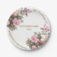 Elegant Pink Roses With Golden Fonts Paper Plate. Easy to be customised by adding name, monogram, initial or logo. Also, fonts style, colours and sizes can be changed. Matching items available.