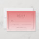 This wedding RSVP card features a minimalist and modern design with a soft gradient pink background, transitioning from light to deeper shades. The layout is clean and balanced, emphasizing elegance through its use of serif and cursive typography. It includes customizable fields for names and attendance details, making it both functional and stylish. Perfect for formal occasions, the card conveys warmth and sophistication, ideal for inviting guests to share in a special celebration.