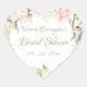 Elegant Pink & Sage Green Floral Bridal Shower Heart Sticker