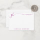Stylish personalised note cards with fancy lettering script initials or monogram and name in your choice of colours (shown in pink). CHANGES: The text font style, colour, size and placement can be changed in EDIT. ASSISTANCE: For help with design modification or personalisation, colour change, resizing, transferring the design to another product or if you would like coordinating items, contact the designer BEFORE ORDERING via the Zazzle Chat MESSAGE tab below or email makeitaboutyoustore@gmail.com.