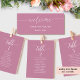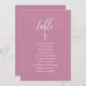 Help your guests find their table with these elegant pink seating plan cards with guest's names. Double-sided cards so guests can look from both, front or back for their names. Clear space all around giving you the liberty to use clips or punch holes for hanging displays, or use a table holder/frame. Attractive pink background and white text. Modern handwritten calligraphy details. Part of our "Mauve Pink Watercolor Botanical Monogram Wedding" Collection with a variety of coordinating products available, including table number cards, menus, and more. Visit the entire collection with this link: https://www.zazzle.com/collections/mauve_pink_watercolor_elegant_monogram_wedding-119235672549123464