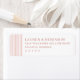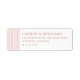 These return address labels feature a minimalist design with soft pink and white hues, creating an elegant and sophisticated look. The layout includes vertical stripes on the left side, adding texture to the clean composition, while the text is arranged hierarchically in a modern sans-serif font for clarity and style. Perfect for formal occasions, these labels convey a refined atmosphere through their use of negative space and subtle colour contrasts, making them ideal for those who appreciate understated elegance.