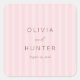 This square sticker features a charming design with alternating light pink and white vertical stripes, creating a subtle yet elegant pattern. The text is arranged in a clean, hierarchical layout using a mix of bold serif fonts and delicate cursive script, enhancing its sophisticated appeal. The soft color palette evokes a gentle, romantic atmosphere, making it perfect for formal occasions like weddings or engagements. Its minimalist style focuses on typographic elegance, ensuring clarity and readability while conveying an understated mood of anticipation and celebration.