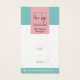 Elegant Pink & Teal Botanical Social QR Price Tag: Make a statement with these sophisticated hang tags featuring botanical motifs and pink and teal aesthetics. Designed for clothing boutiques, beauty and grooming products, as well as spas and salons catering to a female audience. Your business logo takes prominence against a bold pink background. The tag includes designated spaces for Size and Price, while the lower portion offers room for website details. A delicate pastel pink leafy silhouette adds a touch of charm to the tag's front. Flip it over to unveil your business name, a personalised message, and a distinctive tagline or slogan at the footer. Enhance customer engagement with a convenient QR Code on the back. Explore our coordinated collection for cohesive branding solutions.
