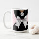Elegant Pink Tiffany Ethnic Pregnancy Mummy to Be Coffee Mug. Pamper the mother to be with a glam tiffany theme baby shower mug or bougie mummy to be mug! This chic, modern, retro design is perfect for the mother to be who has everything and doubles as a fun pregnancy reveal mug. The combination of blush pink with pearls, a white bow and little black dress coordinate with our Tiffany Theme Baby Shower invitations, party decor, tableware and more! More skin tones available in our store.