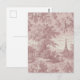 Elegant Pink Toile de Jouy French Country Scene Postcard