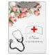 Elegant Pink Tulip Floral & Stethoscope Nurse Clipboard