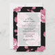 This design features elegant pink roses. Featuring black background in combination with the pink vintage flowers. Opaque white layer, white border and simple text create a sophisticated classy look. The elegant arranged floral layout on one side and the black opposing side displaying the bride's and groom's names and a single rose combine to bring together a truly unique design. This design is ideal for any wedding theme. The perfect design for all seasons. Matching wedding stationery items and other wedding invite formats are also available.