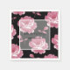 This design features elegant pink roses. Featuring black background in combination with the pink vintage flowers. Opaque white layer, white border and simple text create a sophisticated classy look. This design is ideal for any wedding theme. The perfect wedding napkin design for all seasons. Matching wedding invitations and other stationery items are also available.