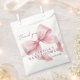 Baby shower favour bags featuring an elegant pink watercolor bow with flowing ribbon details. Elevate your party favours with these romantic baby shower party favour bags, designed in a soft blush-pink palette that perfectly captures the trendy coquette aesthetic.