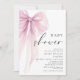 Elegant Pink Watercolor Bow Baby Shower Invitation