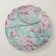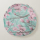 Elegant Pink Watercolor Cherry Blossoms On Agate Round Cushion