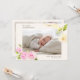 This stylish and elegant 2-sided photo birth announcement card features four (4) photos (front & back) of your newborn baby girl, custom text that can be personalised, watercolor art of pink camellia and white magnolia flowers. Customise this template product by adding your newborn baby's name, birth record, and the parents' names.