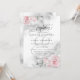 Pink Wedding Invitation | A combination of sweet pink roses featuring iridescent leaves and sparkles atop a pewter grey watercolor splash brings these invitations right into the current modern BOHO style. A combination of script calligraphy combined with a minimalist, contemporary style text layout makes it a trending style wedding suite. This is part of a wedding stationery collection with matching wedding stationery suite accessories created for the BarefootBride™ by © WhimsicalArtwork™.