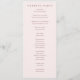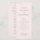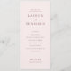 This elegant wedding program features a simple, vertical layout with ample white space on a light pink background, creating a soft and inviting atmosphere. The design highlights the names "Lauren" and "Benjamin" in prominent uppercase serif fonts, separated by a cursive "and," adding a touch of romance. Below, a structured list outlines the ceremony's flow using classic serif typography, maintaining formality and tradition. Customizable placeholders for date and location ensure personalization, making it perfect for a sophisticated and memorable event.