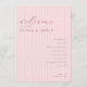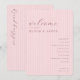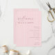 This wedding program features a vertical layout with a soft pink background adorned with subtle diagonal stripes, creating an elegant and romantic aesthetic. The design combines script, serif, and sans-serif fonts to convey warmth and sophistication, making it perfect for a formal celebration. Customizable text fields allow personalization for names and event details, while the minimalist approach ensures clarity and focus on the special occasion. Ideal for weddings, this program captures the joy and significance of the moment in a stylish and inviting manner.