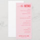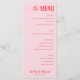 This wedding menu features a minimalist and elegant design with a soft pink background, creating a warm and inviting atmosphere. The layout is clean and well-organized, with distinct sections for starters, salad, main course, and dessert, each highlighted by simple serif typography that ensures clarity and sophistication. Coral accents in the cursive title add a touch of modern charm, while ample white space enhances readability. Perfect for an upscale dining experience, this template combines contemporary style with functional design, making it ideal for couples seeking a refined yet straightforward presentation for their special day.