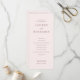 This wedding program features a minimalist and modern design with a soft pink background, creating an elegant and inviting atmosphere. The layout is clean and structured, utilizing ample negative space to highlight the hierarchy of text in muted pinks and deep maroons. Typography plays a key role, with serif fonts adding sophistication and cursive for a romantic touch, while customizable placeholders allow personalization for names, dates, and locations. Ideal for couples seeking a stylish yet straightforward program that emphasizes clarity and formality.