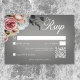 Indulge in timeless elegance with this exquisite wedding response card with dinner choices. The realistic top floral border, adorned with soft blush and white roses, peonies, and delicate blooms, creates a romantic and sophisticated atmosphere. The medium grey background, highlighted by a soft white transparent blur, adds a touch of ethereal beauty. The elegant white text, framed by the floral border, completes this classic and timeless design. This design is the perfect choice for a couple seeking a sophisticated and unforgettable wedding celebration. Created by Simply Farmhouse Press.