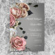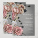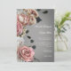 Elegant Pink White Floral Roses Grey Wedding Invitation
