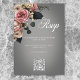 Elegant Pink White Floral Roses Grey Wedding QR RSVP Card