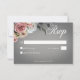 Elegant Pink White Floral Roses Grey Wedding RSVP Card