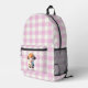 Elegant pink white plaid cute cow personalise printed backpack