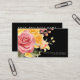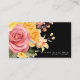 Elegant Pink & Yellow Watercolor Roses on Black Business Card | Bold & Feminine Floral Design