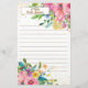 Beautiful pink and yellow floral with green leaves and gold glitter on white personalised stationery. This paper is lined for your convenience. Your name is in the top left corner, written in a pretty script font. Contact us for help with customisation or matching products.