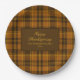 Set a refined autumn table with this warm tartan plaid Thanksgiving paper plate set. Featuring rich tones of amber, gold, and espresso brown, it perfectly complements cozy harvest gatherings and elegant family dinners. Customizable text makes it ideal for personalizing with your family name or event year. A timeless, heritage-inspired design that adds rustic sophistication to any fall tablescape.