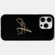 Elegant Plain Black Gold Script Monogram iPhone 15 Pro Max Case