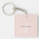 Elegant Plain Blush Pink White Script Monogram Key Ring